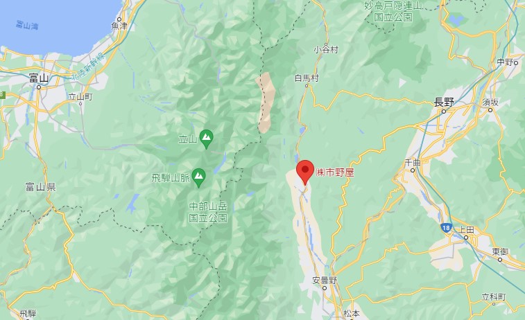 山々から流れる雪解け水が長い年月をかけて山肌を通り地層に磨かれることで「八彩」の水を生む北アルプスの麓、水どころである信濃大町に龍水泉を醸す「市野屋」はあります。